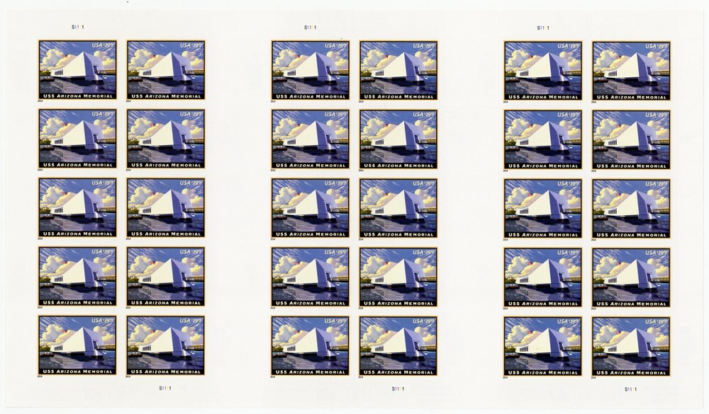 4873, $19.99 USS Arizona Uncut Press Sheet of 30 Mint Condition - Stuart Katz