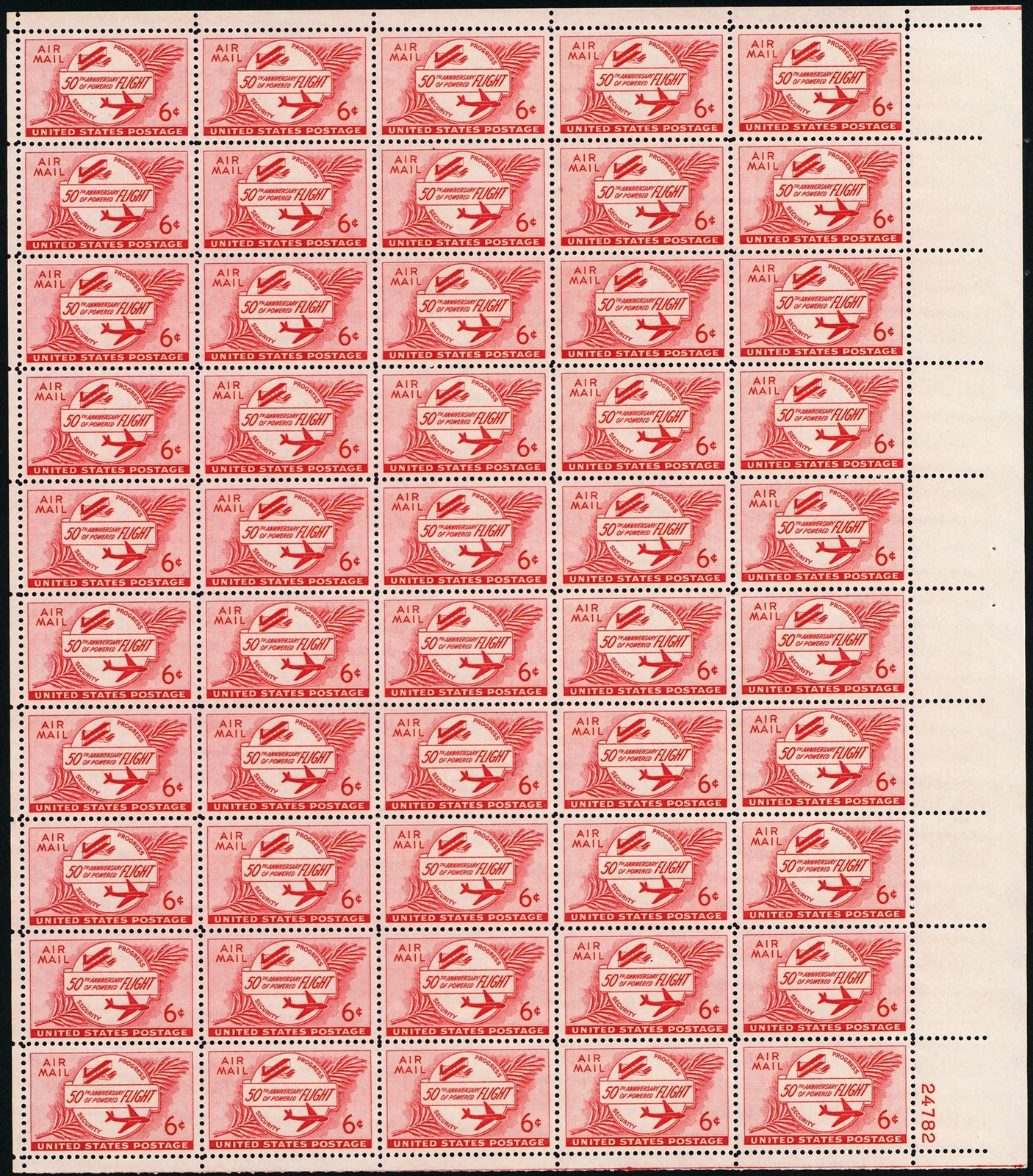 50th Anniversary of Powered Flight Full Sheet of Fifty 6 Cent Airmail Scott C47