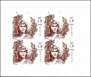 5297, Statue of Freedom $5.00 - PL# Block of Four Stamps - Stuart Katz