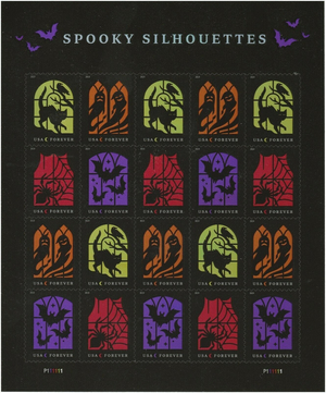 5420-5423 Spooky Silhouettes Sheet of 20 - First Class Stamps - Stuart Katz