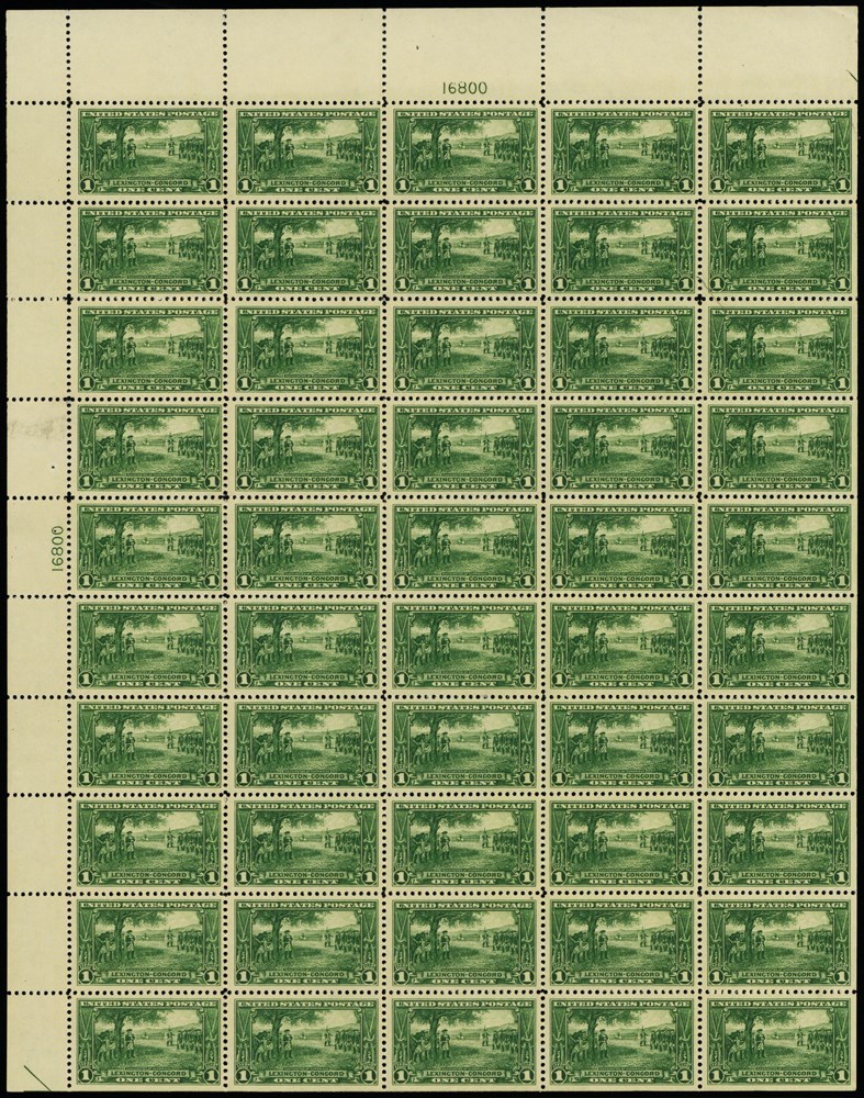 617, Mint VF Sheet of 50 1¢ Lexington Stamps Brookman $400.00 - Stuart Katz