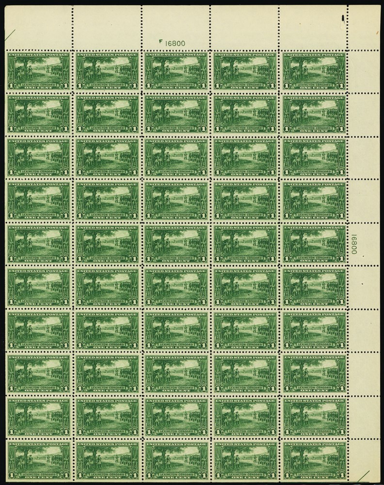 617, VF Mint NH Top PL# Sheet of 50 1¢ Stamps Brookman $400.00 - Stuart Katz