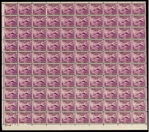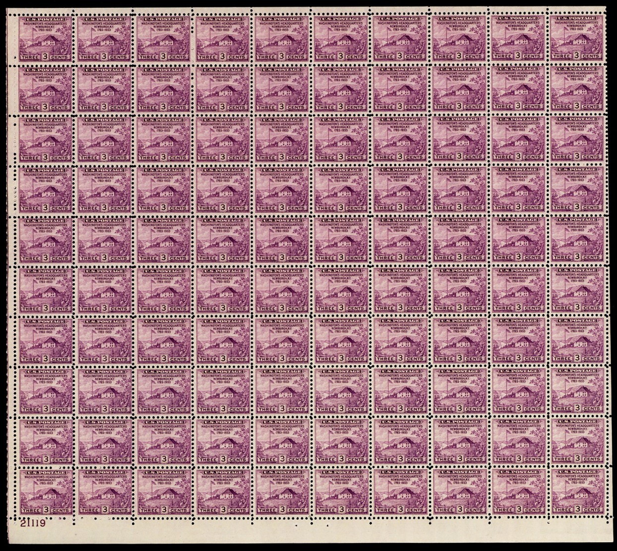 727, Mint NH 3¢ Washington's Headquarters Complete Sheet of 100 Stamps