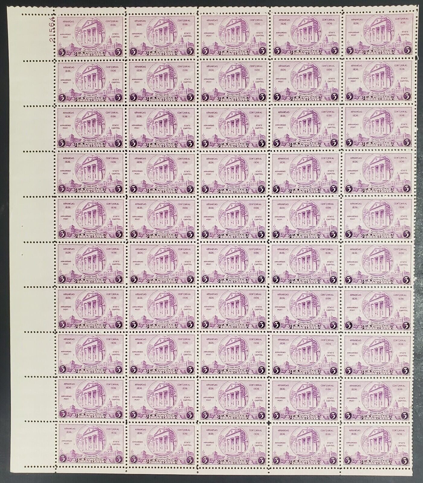 782, MNH 3¢ Arkansas Centennial Sheet of 50 Postage Stamps * Stuart Katz