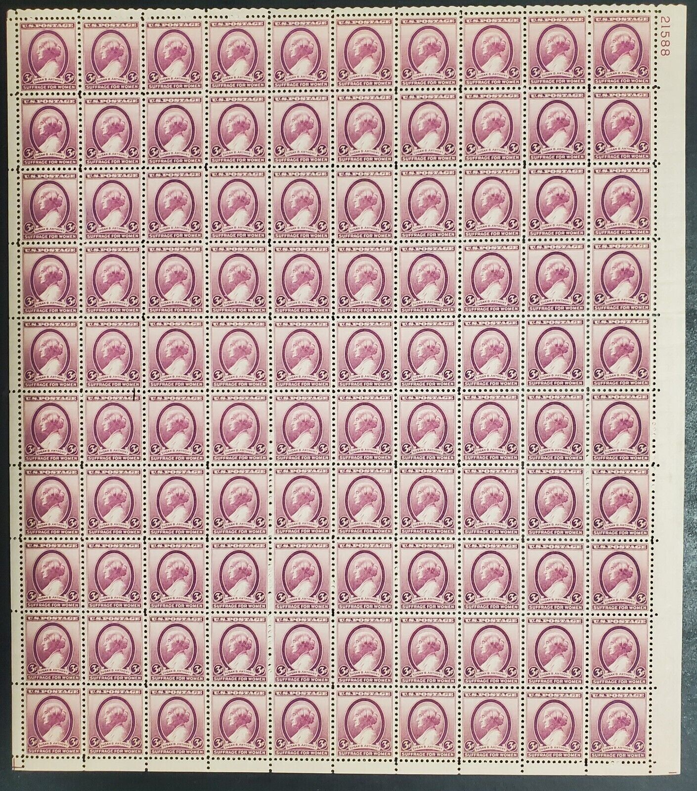 784, MNH 3¢ Susan B Anthony Sheet of 100 Postage Stamps * Stuart Katz