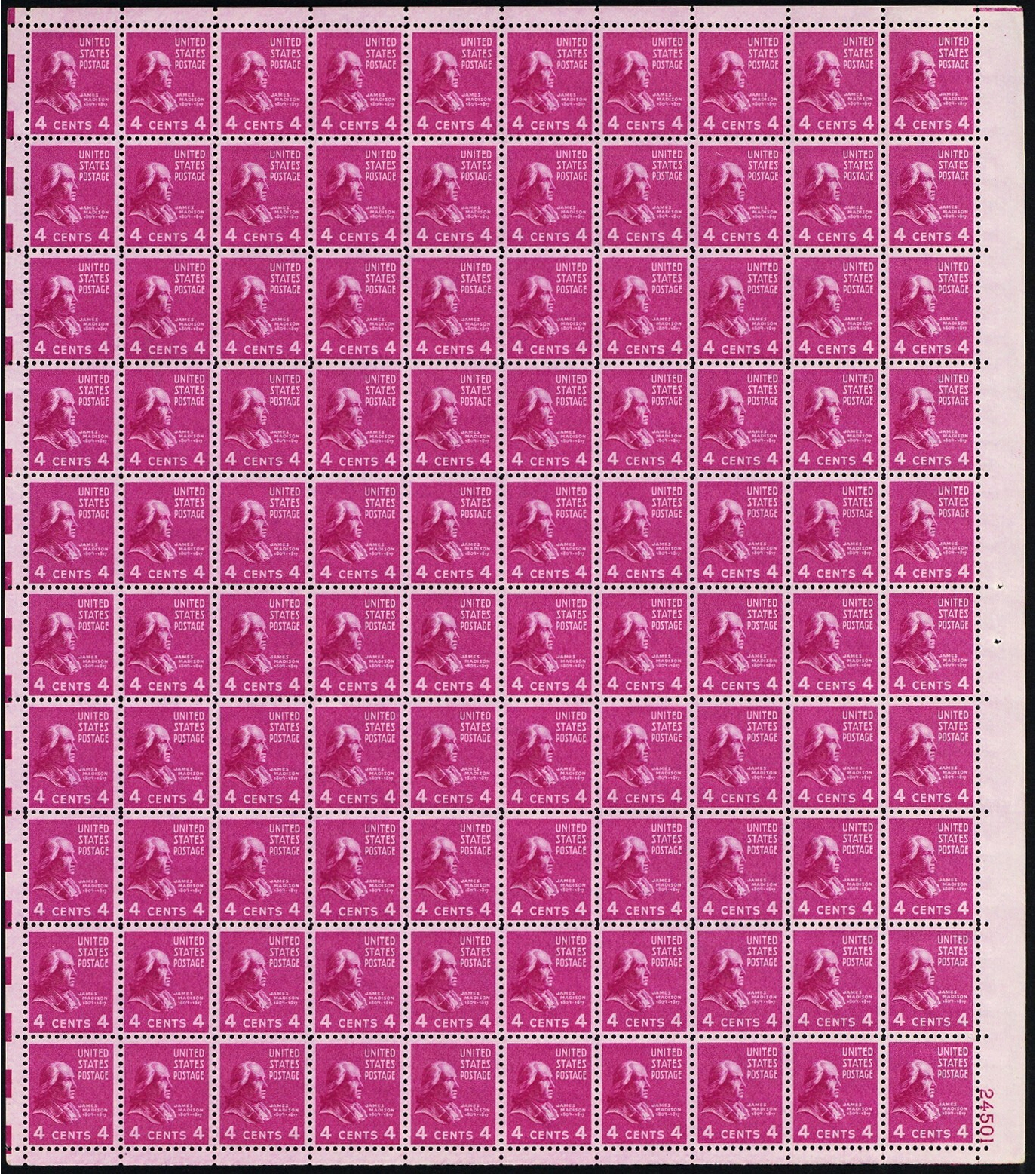 808, Mint VF NH 4¢ Fresh Sheet of 100 Stamps * Stuart Katz