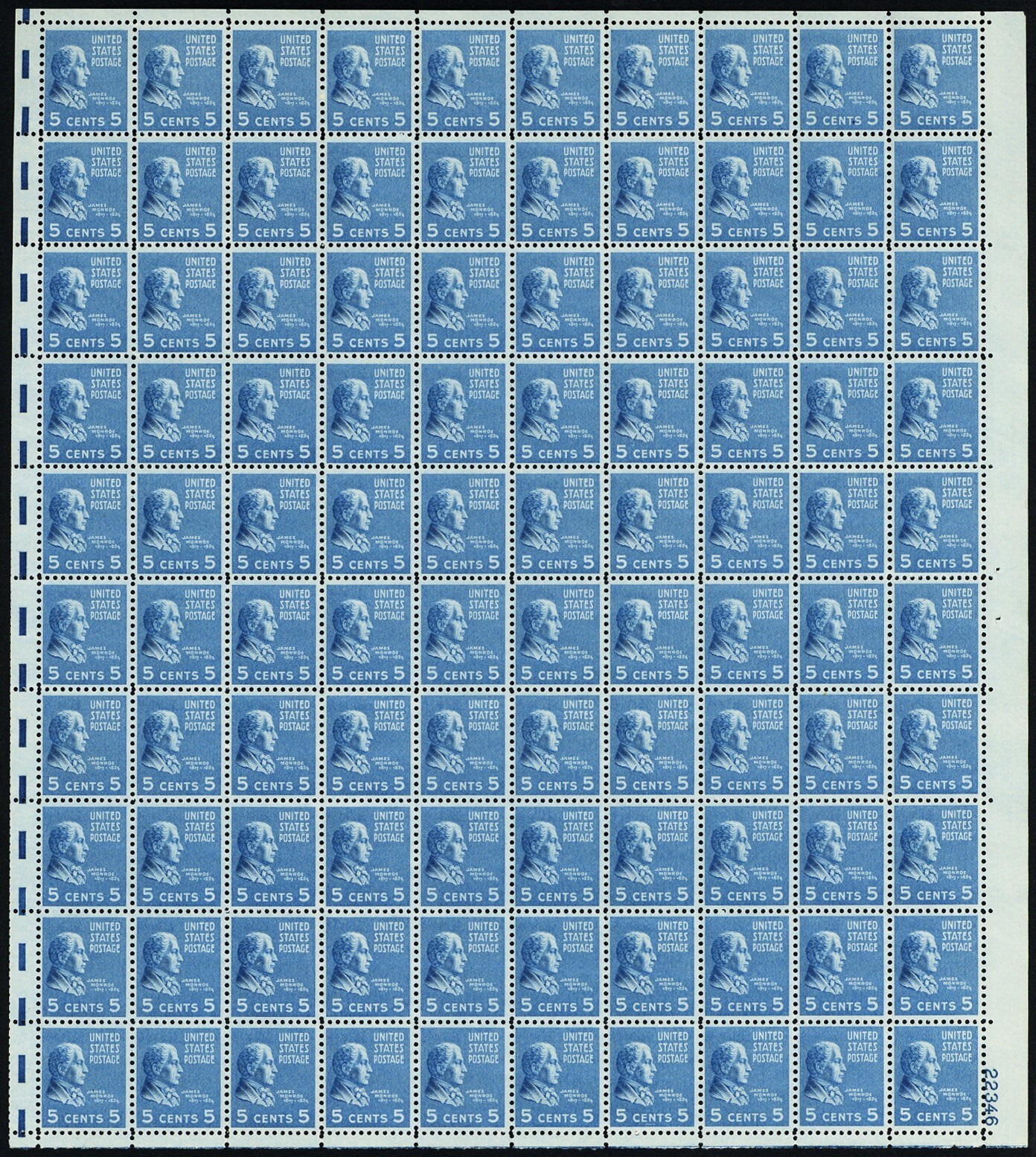 810, Mint VF NH 5¢ Fresh Sheet of 100 Stamps * Stuart Katz