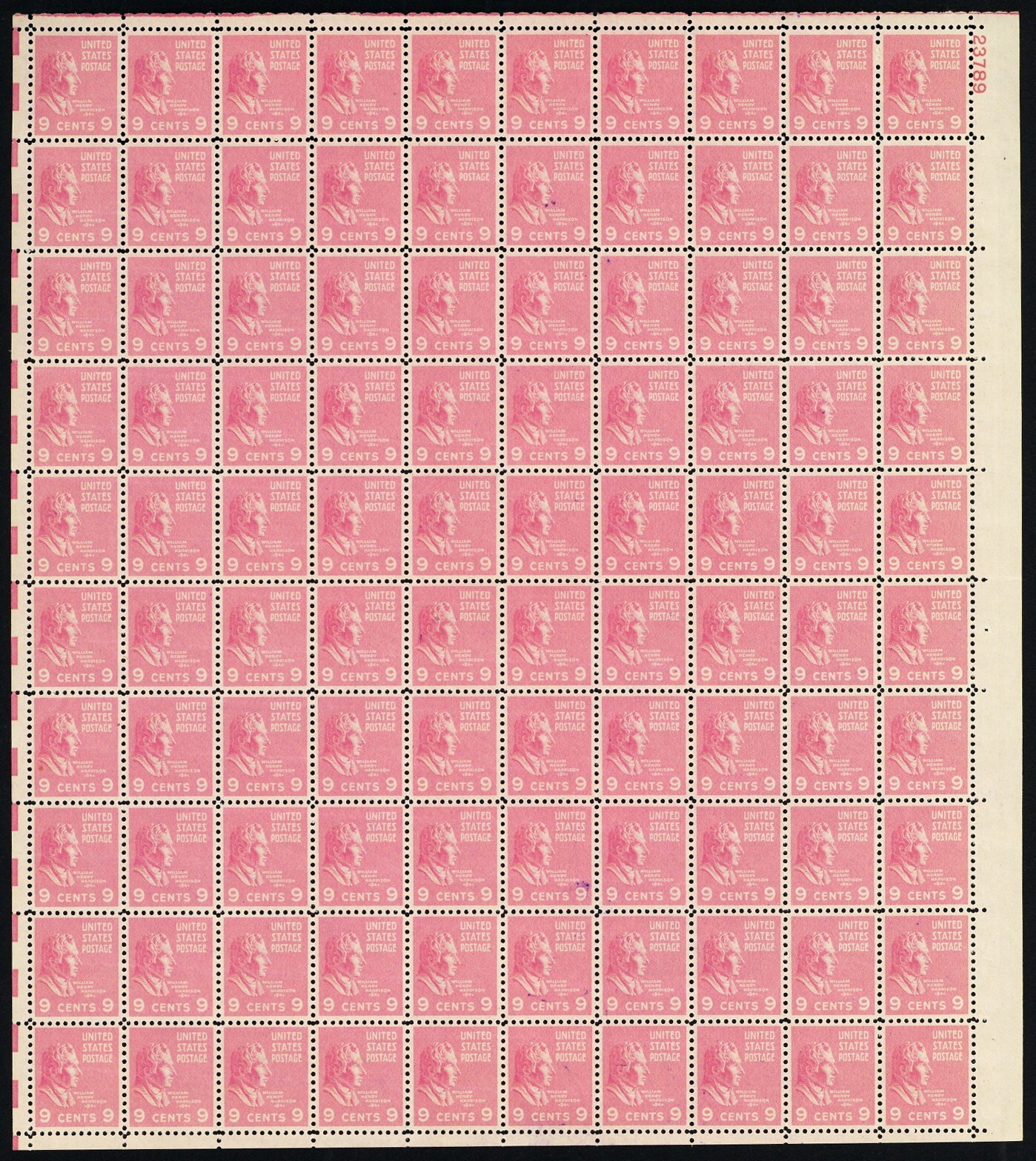 814, Mint VF NH 9¢ Fresh Sheet of 100 Stamps * Stuart Katz