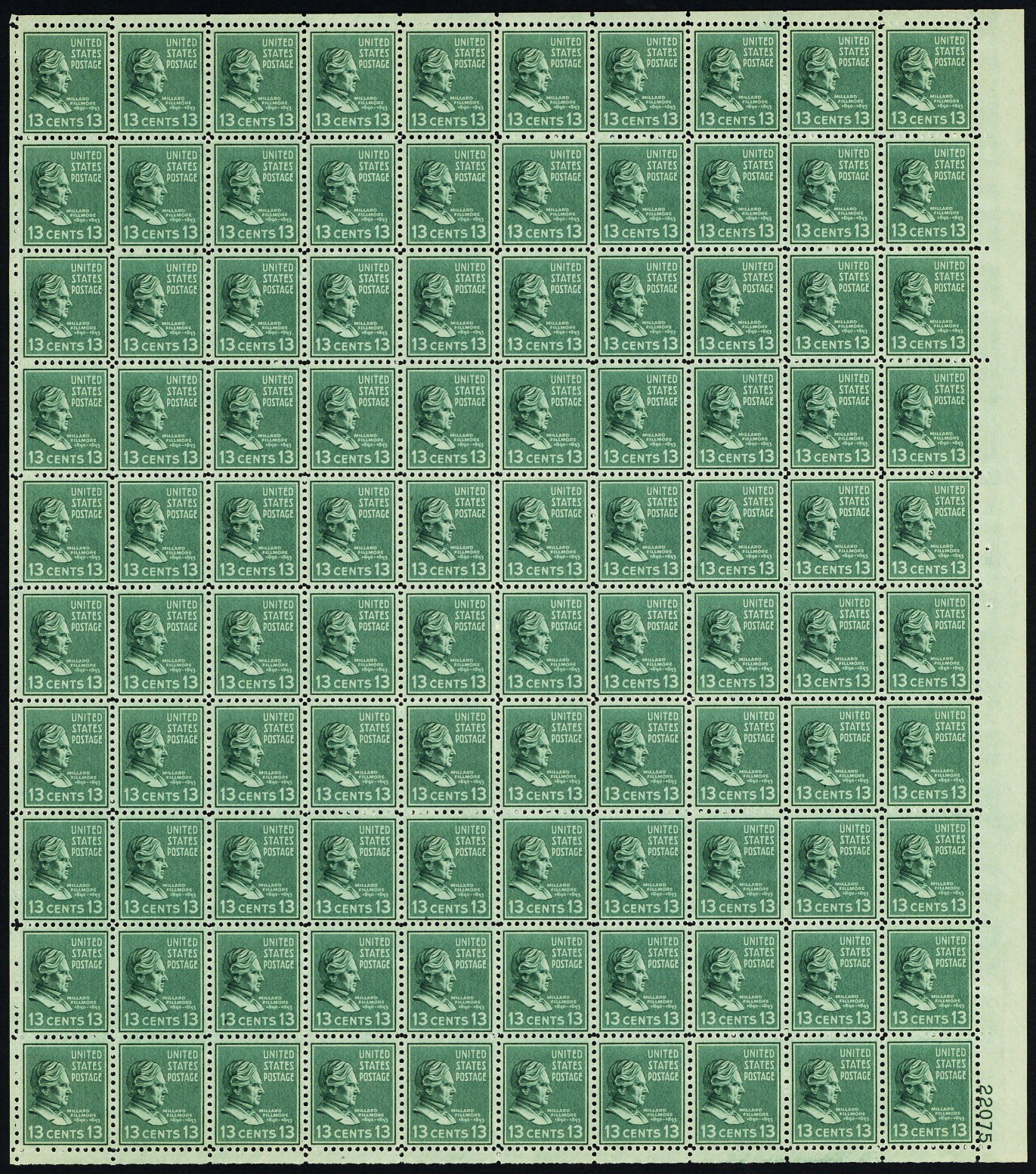 818, Mint VF NH 13¢ Scarce Sheet of 100 Stamps * Stuart Katz