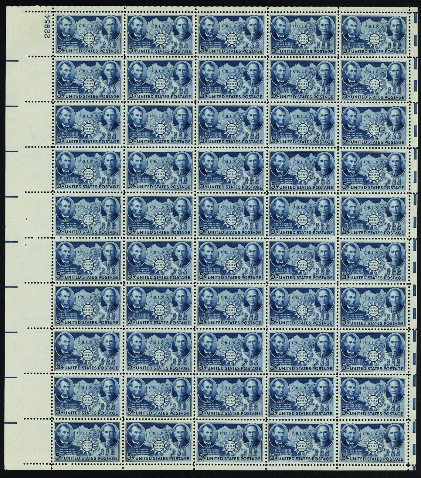 906, Mint VF NH 5¢ China Sheet of 50 Stamps * Stuart Katz