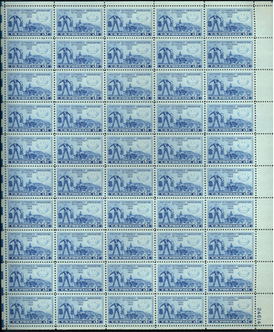 A.A.A. Auto Club Issue Sheet of Fifty 3 Cent Postage Stamps Scott 1007