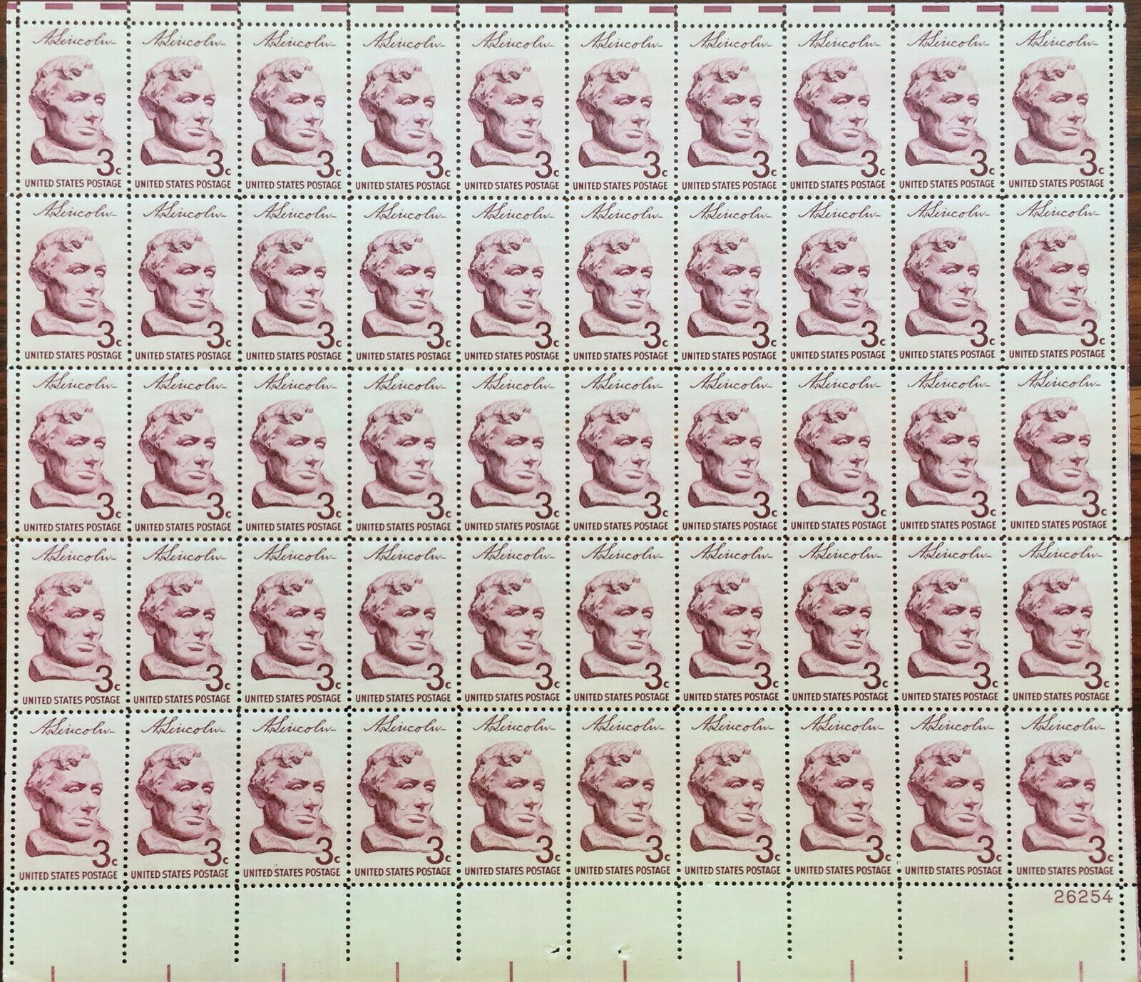 Abraham Lincoln Mint Sheet of Fifty 3 Cent Postage Stamps Scott 1114