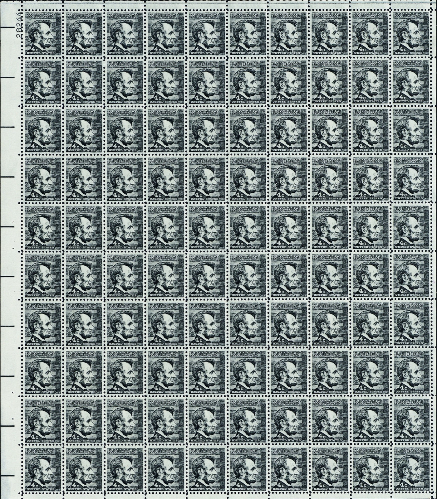 Abraham Lincoln Sheet of 100 - 4 Cent Postage Stamps Scott 1282