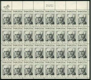 Adolph Ochs Sheet of 32 - 13 Cent Postage Stamps Scott 1700