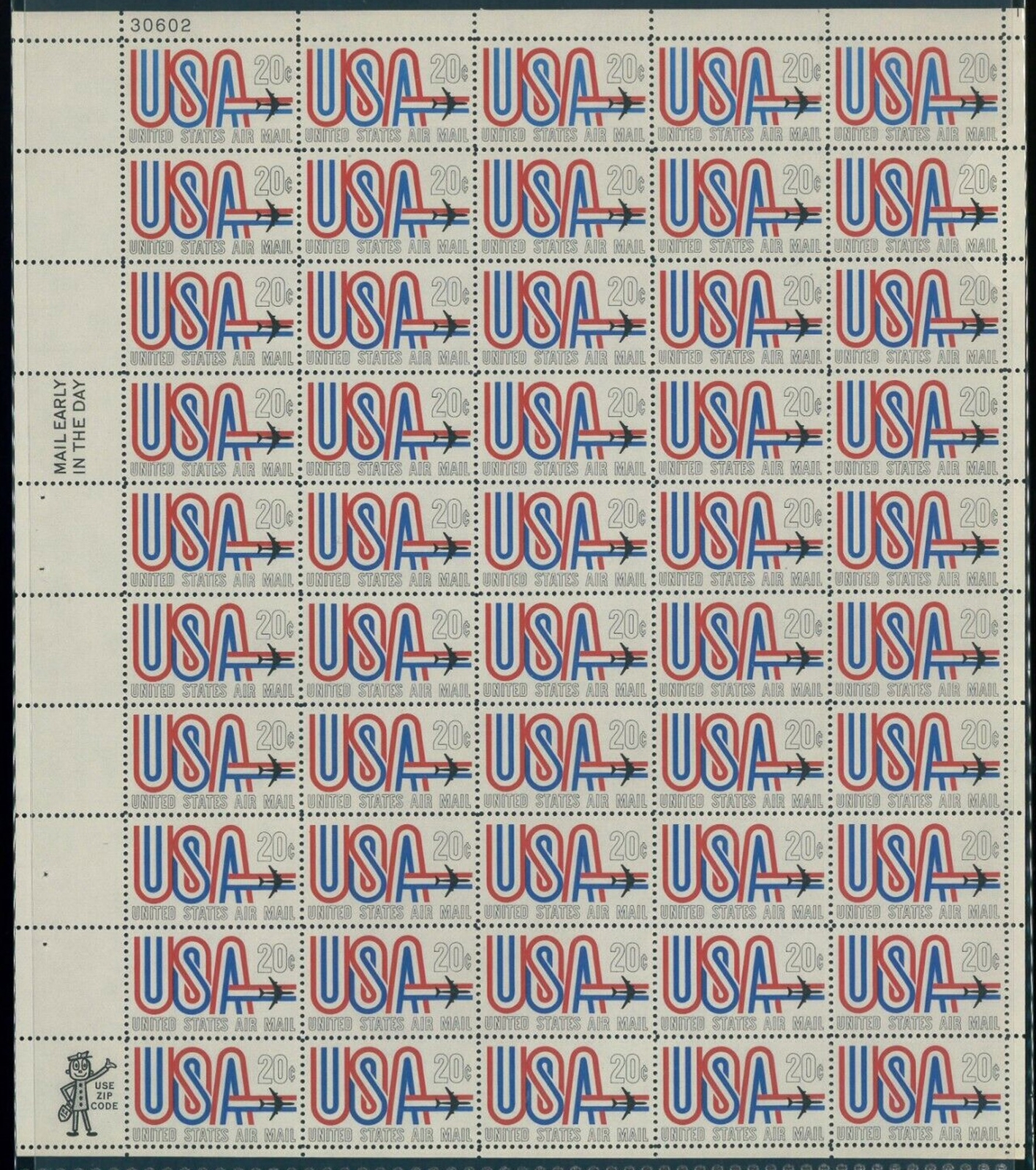 Airmail Complete Sheet of 50 20 Cent Stamps Scott C75