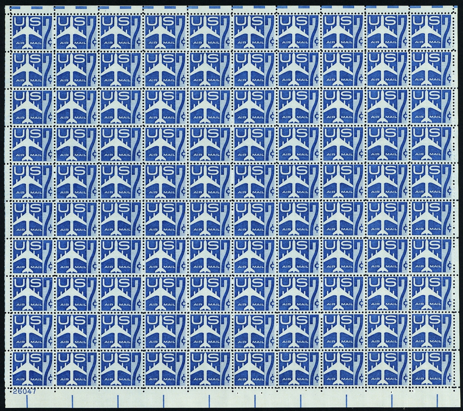 Airplane Full Sheet of One Hundred 7 Cent Airmail Postage Stamps Scott C51