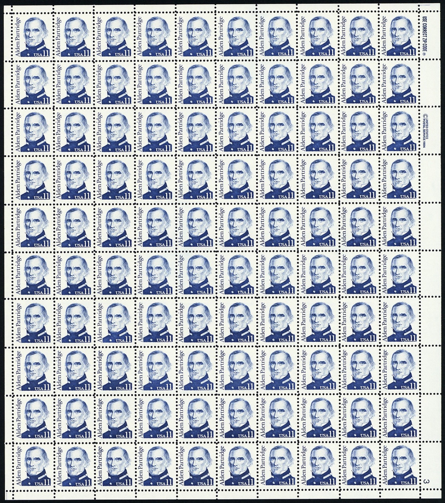 Alden Partridge Sheet of One Hundred 11 Cent Postage Stamps Scott 1854