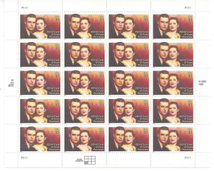Alfred Lunt & Lynn Fontanne Sheet of Twenty 33 Cent Postage Stamps Scott 3287