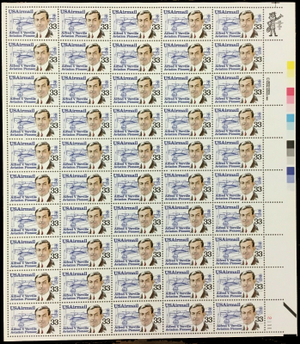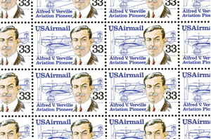 Alfred V. Verville Sheet of Fifty 33 Cent Airmail Postage Stamps C113