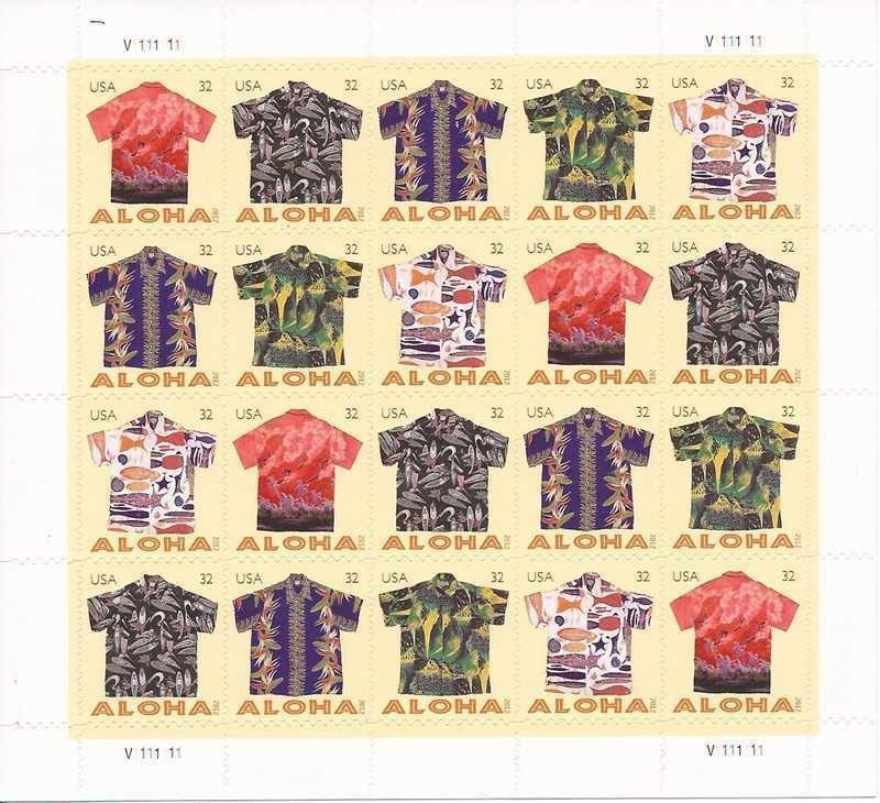 Aloha Shirts Sheet of Twenty 32 Cent Postage Stamps Scott 4592-96