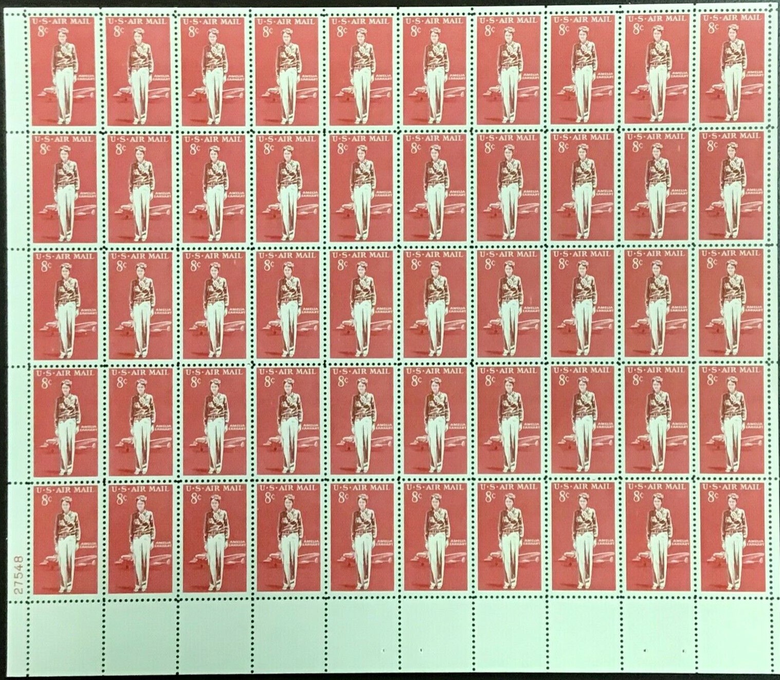 Amelia Earhart Sheet of Fifty 8 Cent Airmail Stamps Scott C68