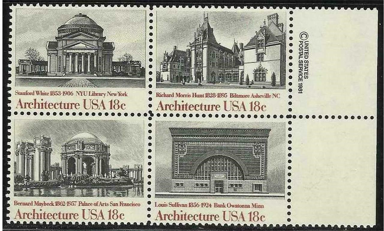 American Architecture Sheet of Forty 18 Cent Postage Stamps 1928-31