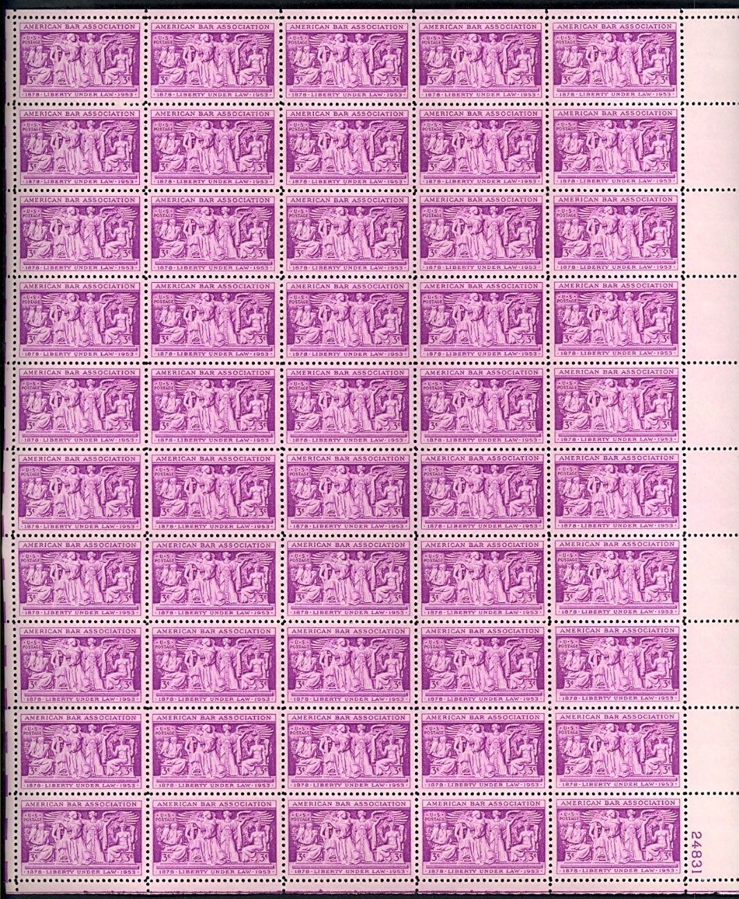 American Bar Association Sheet of Fifty 3 Cent Postage Stamps Scott 1022