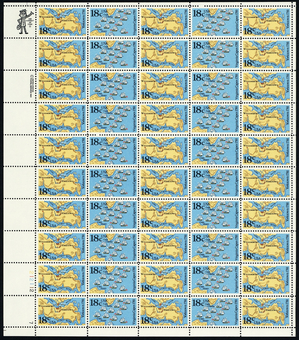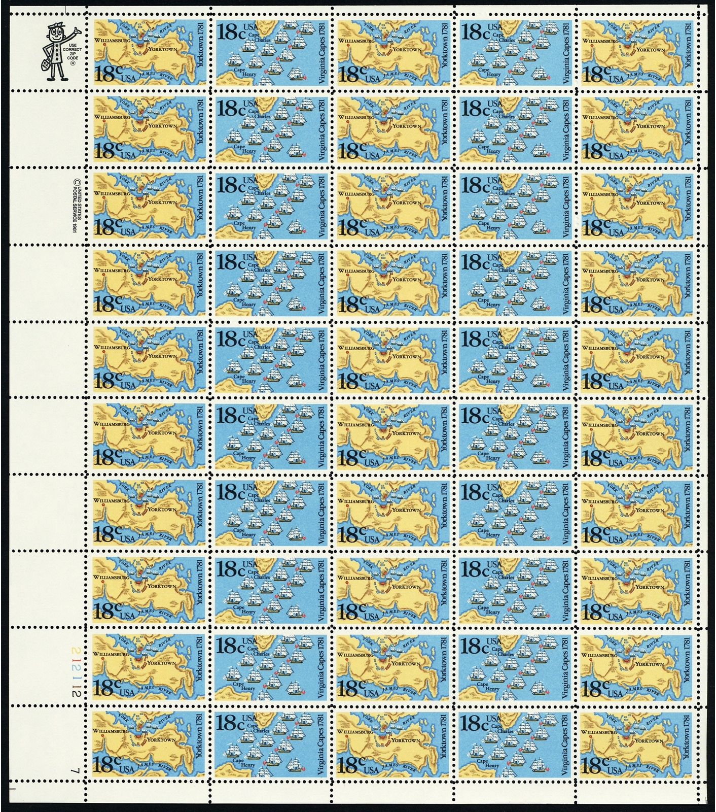 American Bicentennial Sheet of 50 of Fifty 18 Cent Postage Stamps Scott 1937-38