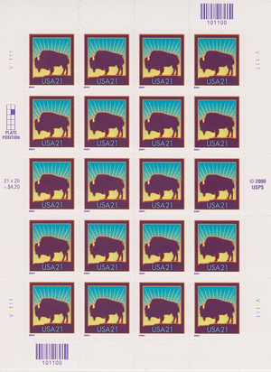 American Bison of Twenty 21 Cent Postage Stamps Scott 3468