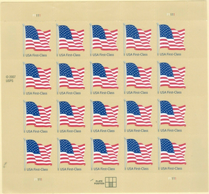 American Flag Sheet of Twenty 41 Cent Postage Stamps Scott 4130