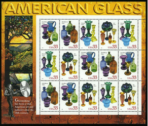 American Glass Sheet of Fifteen 32 Cent Postage Stamps Scott 3325-28
