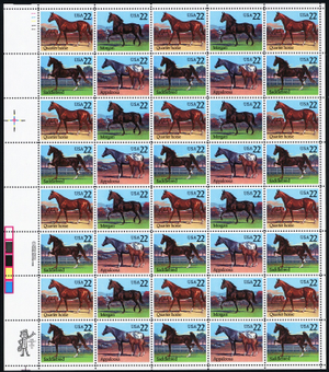 American Horses Sheet of Forty 22 Cent Postage Stamps Scott 2155-58