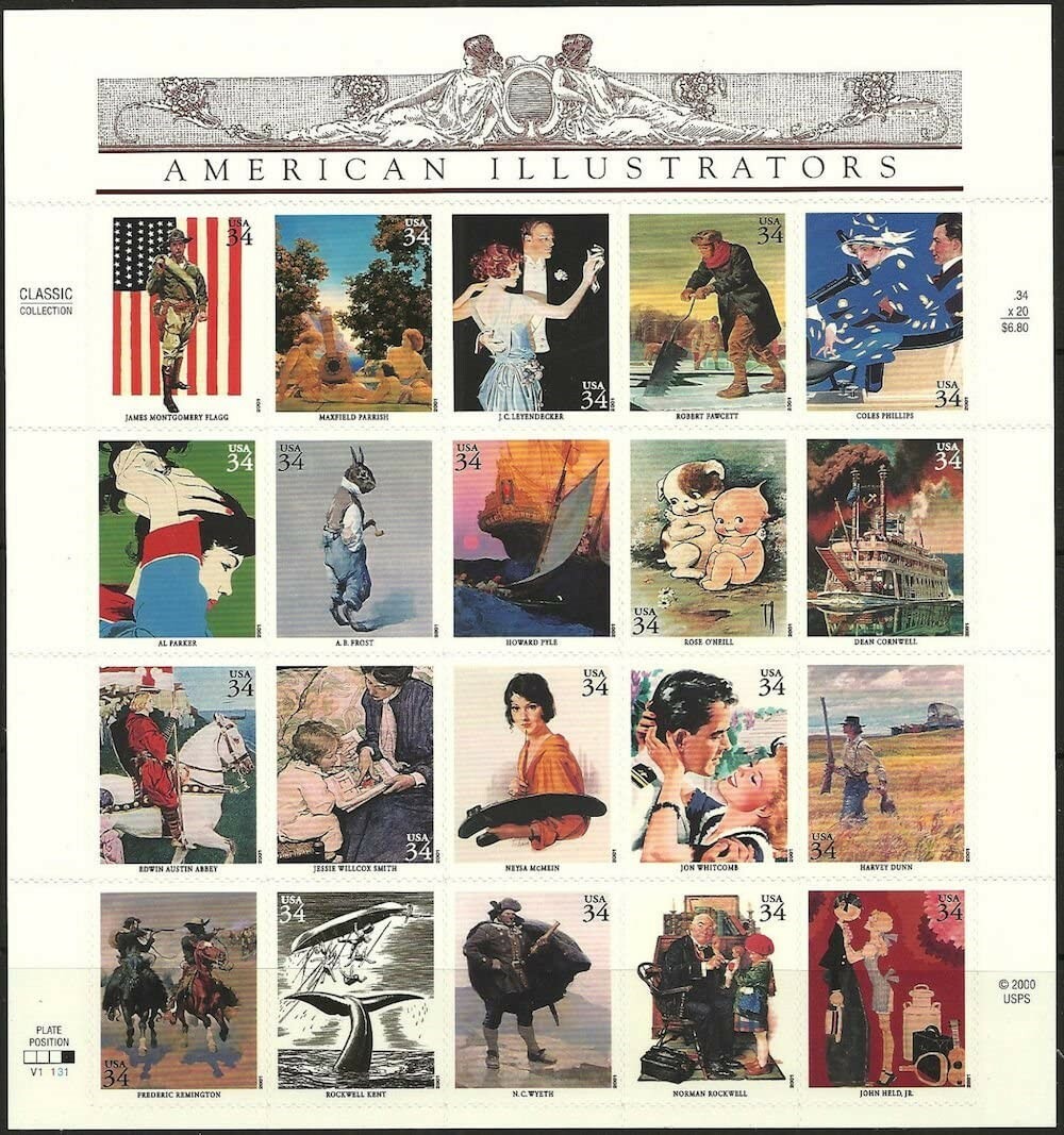 American Illustrators Complete Sheet of Twenty 34 Cent Stamps Scott 3502