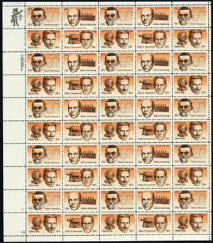American Inventors Sheet of 50 of Fifty 20 Cent Postage Stamps Scott 2055-58