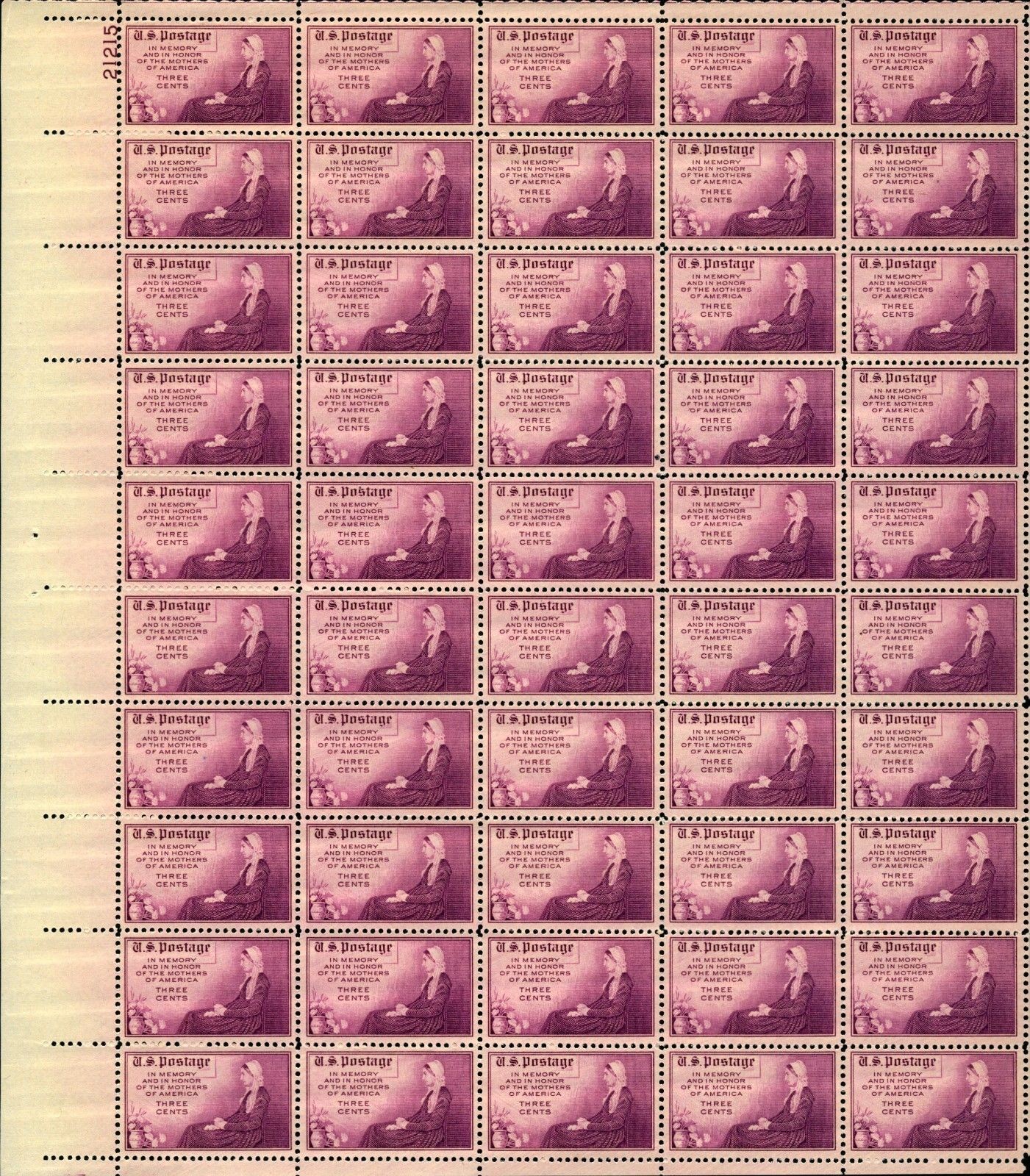 American Mothers Sheet of Fifty 3 Cent Postage Stamps Scott 737