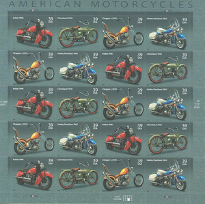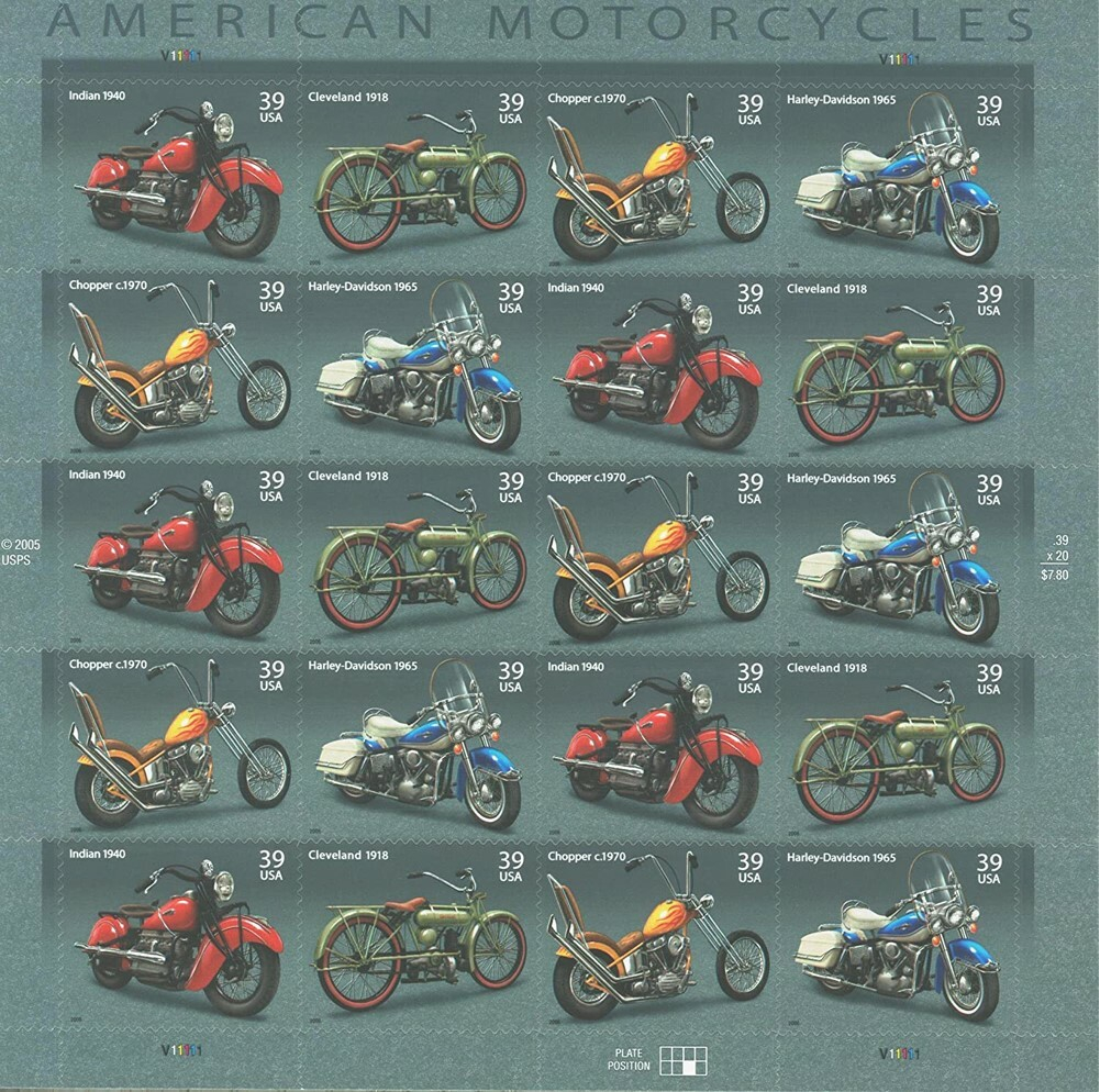 American Motorcycles Complete Sheet of Twenty 39 Cent Stamps Scott 4085-88