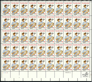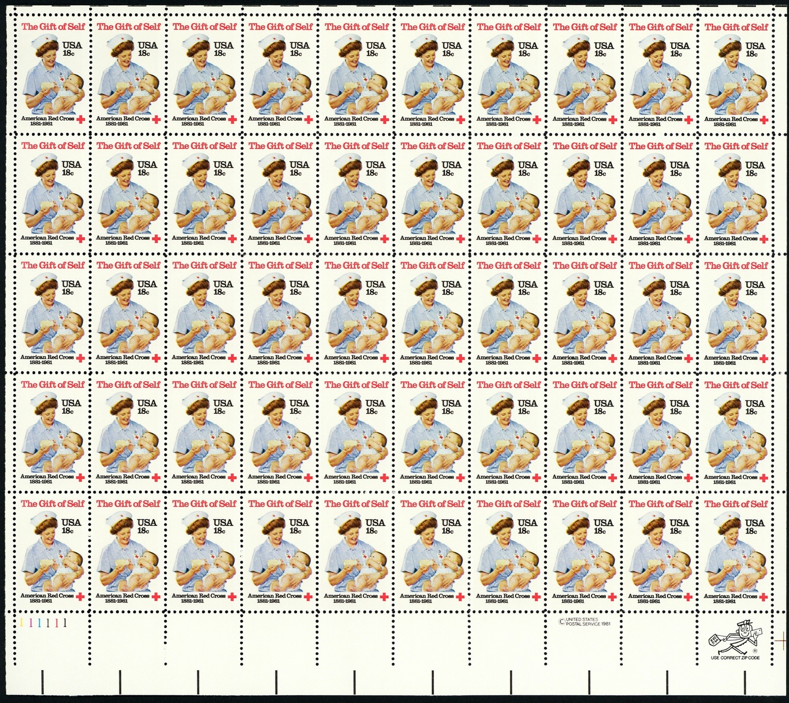 American Red Cross Sheet of Fifty 15 Cent Postage Stamps Scott 1910
