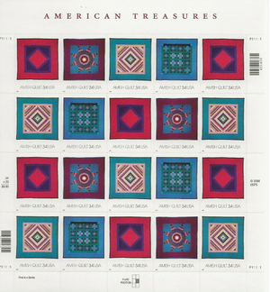 American Treasures Amish Quilts Sheet of Twenty 34 Cent Stamps Scott 3524-27