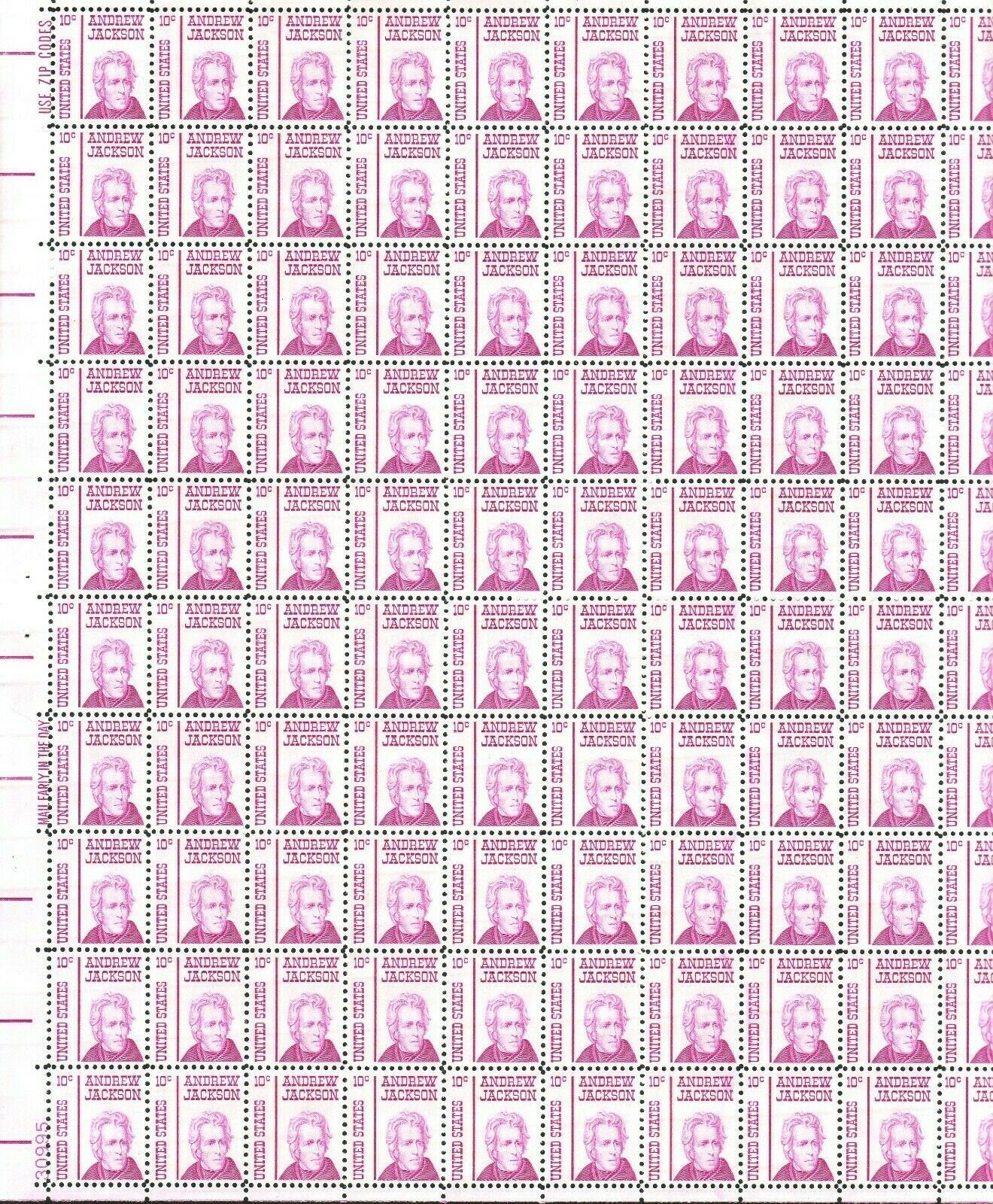 Andrew Jackson Sheet of 100 - 10 Cent Postage Stamps Scott 1286