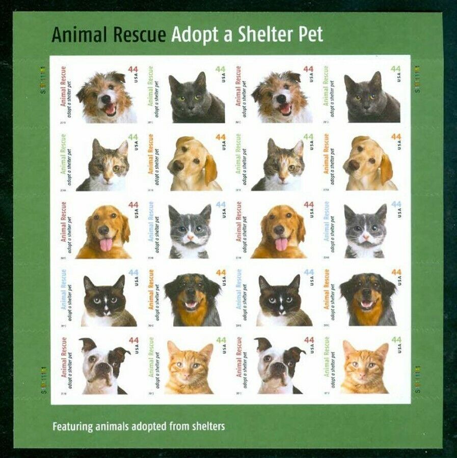 Animal Rescue Adopt a Shelter Pet Sheet of Twenty 44 Cent Postage Scott 4451-60