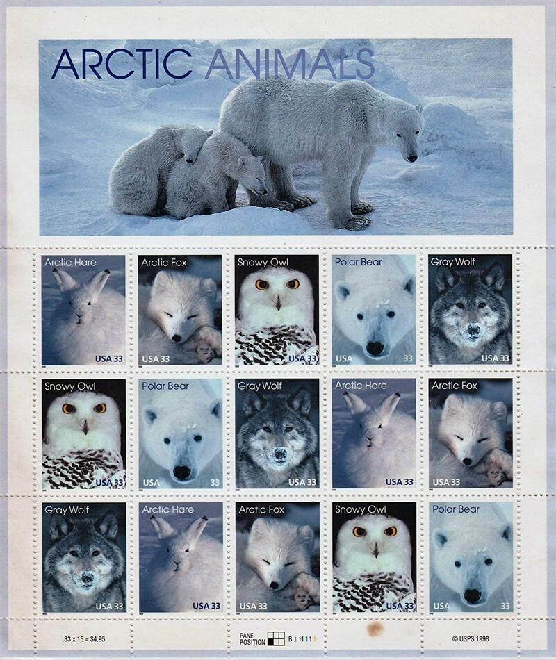 Arctic Animals 33¢ Sheet of 15 Postage Stamps Scott 3292a - Stuart Katz