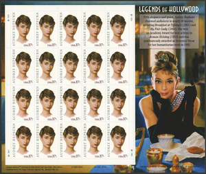 Audrey Hepburn Legends of Hollywood Sheet of Twenty 37 Cent Stamps Scott 3786