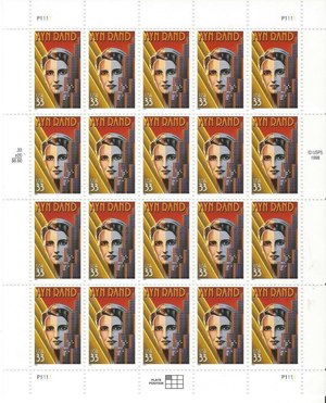 Ayn Rand Sheet of Twenty 33 Cent Postage Stamps Scott 3308