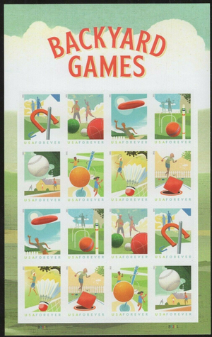 Back Yard Games Sheet of 16 Current Rate Stamps Scott 5627-34
