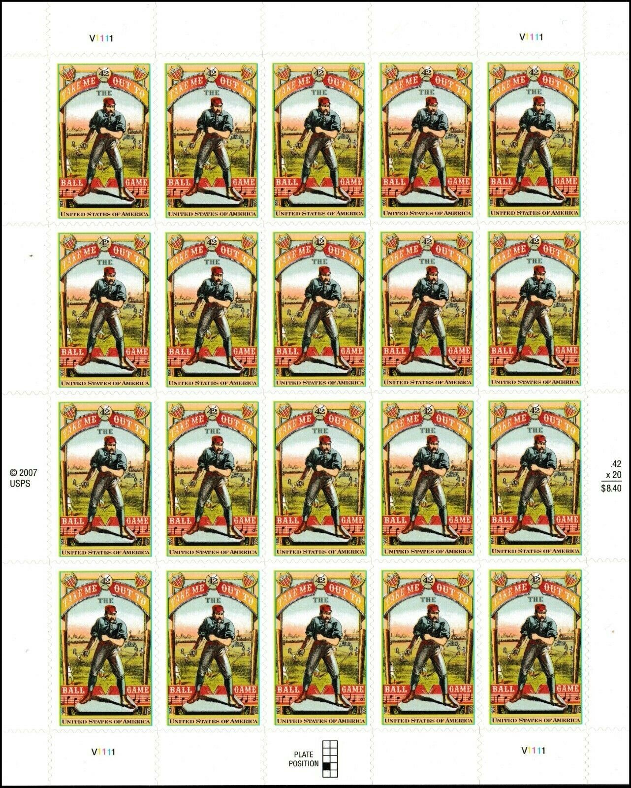 Baseball Game Song Sheet of Fifty 6 Cent Postage Stamps Scott 4341