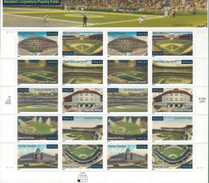 Baseball Legendary Playing Fields Collectible Sheet of Twenty Scott 3510-19