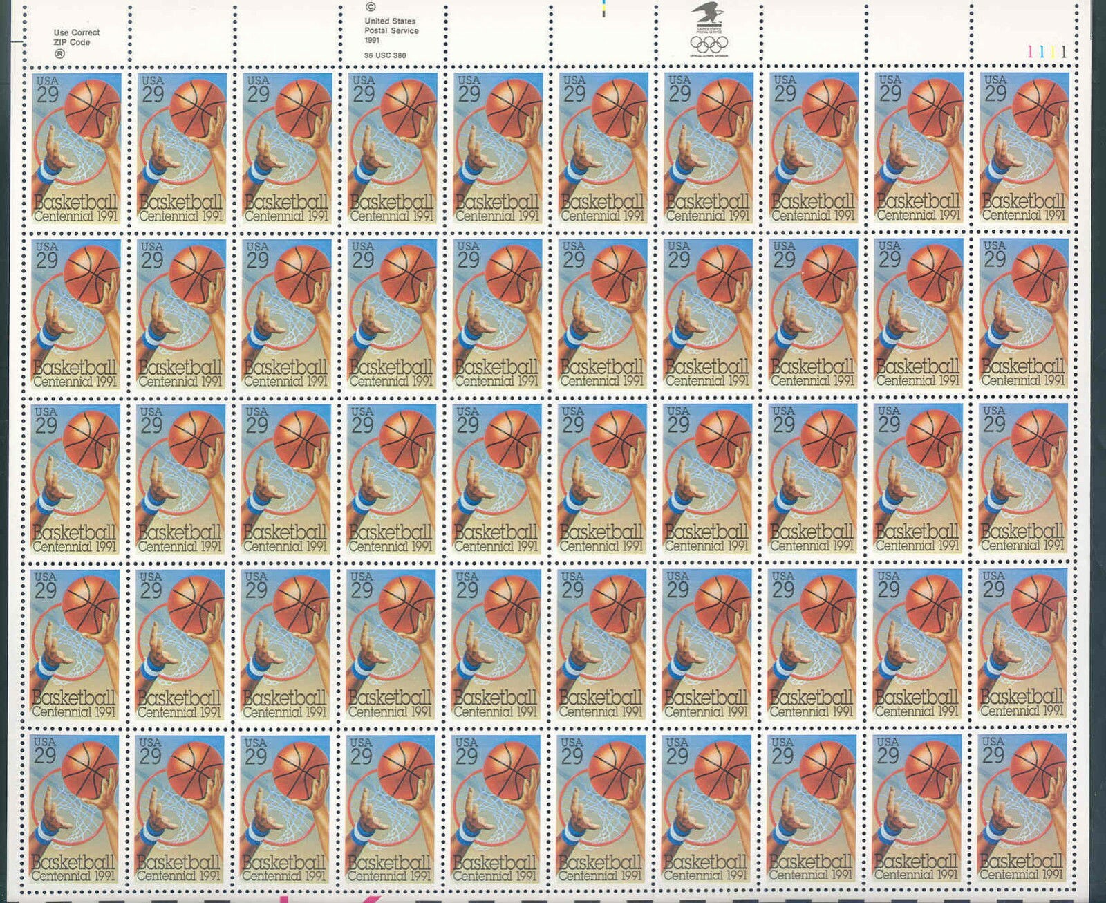 Basketball Sheet of Fifty 29 Cent Postage Stamps Scott 2560