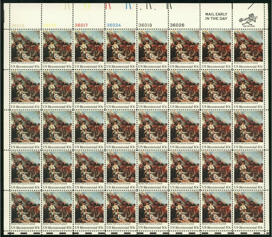 Battle of Bunker Hill Sheet of Forty 10 Cent Postage Stamps Scott 1564