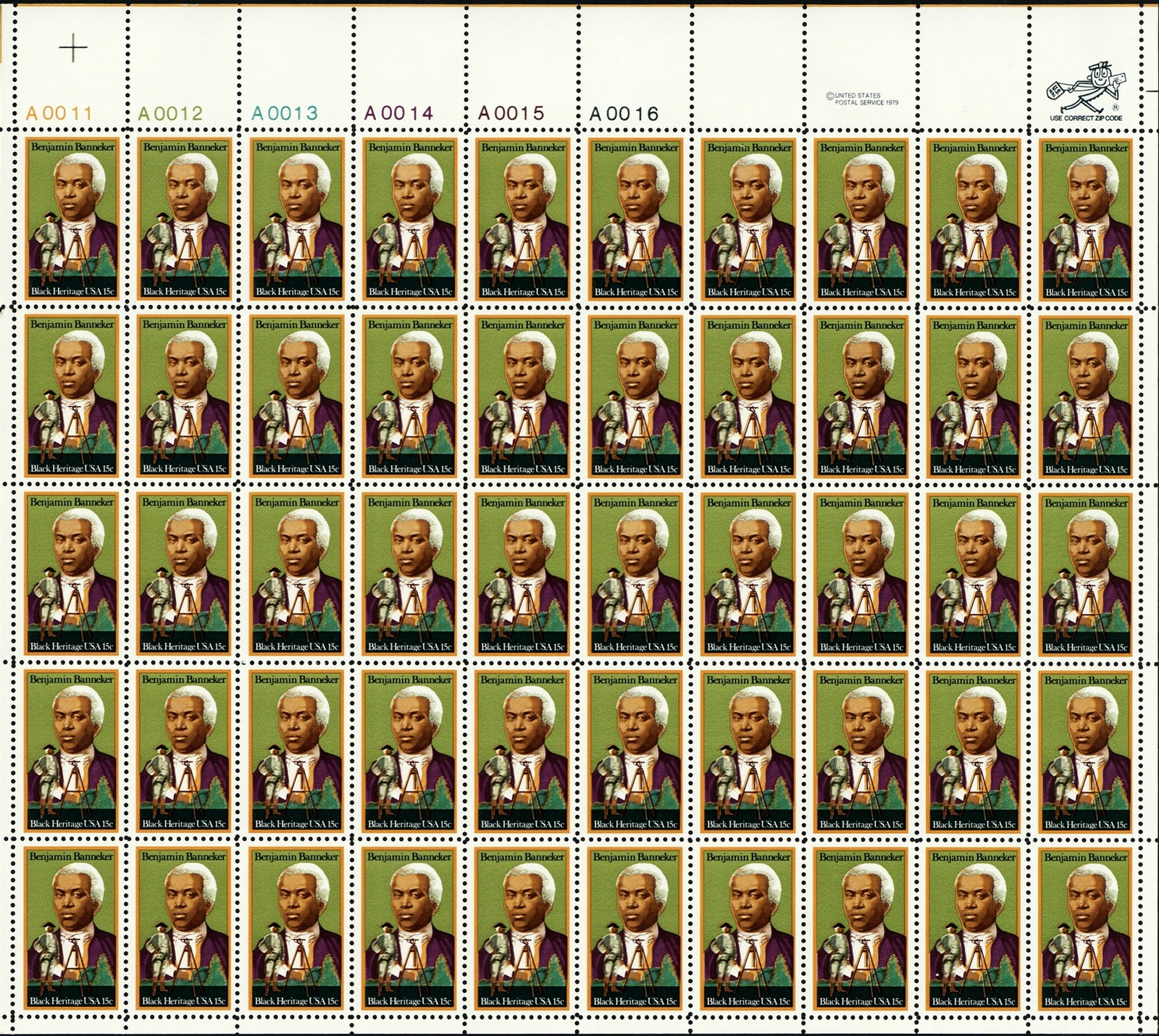 Benjamin Banneker Black Heritage Sheet of Fifty 15 Cent Stamps Scott 1804