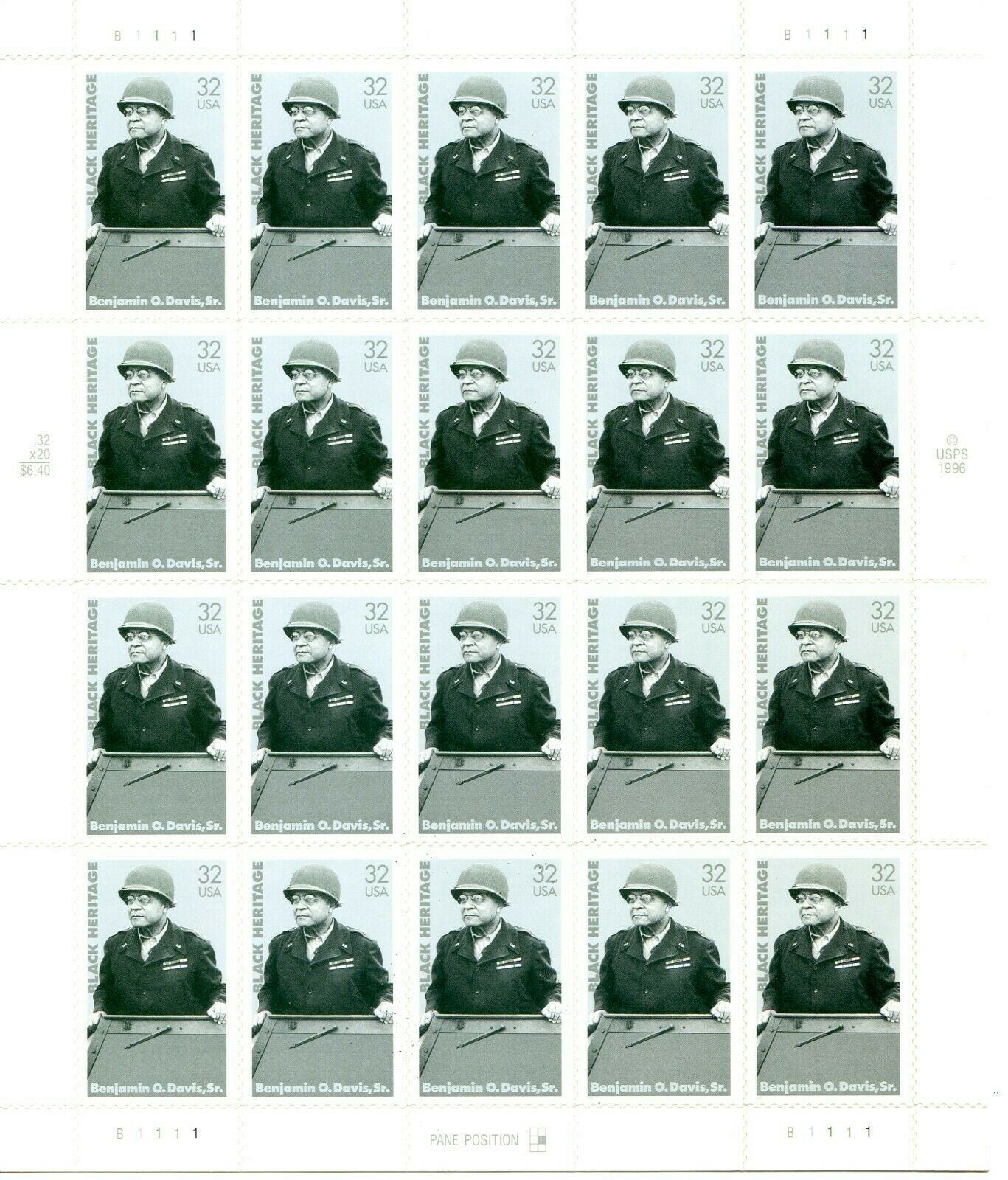 Benjamin O. Davis Sheet of Twenty 32 Cent Postage Stamp Scott 3121
